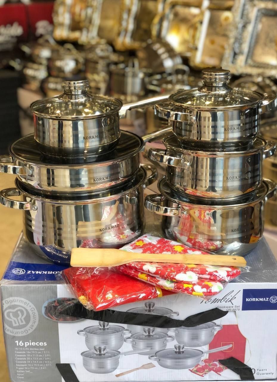 سرویس قابلمه کرکماز، قابلمه استیل کرکماز، سرویس قابلمه 16 پارچه، قابلمه ترک اصل، سرویس قابلمه استیل ترکیه، قابلمه طلایی کرکماز، قابلمه نقرهای کرکماز، Korkmaz cookware